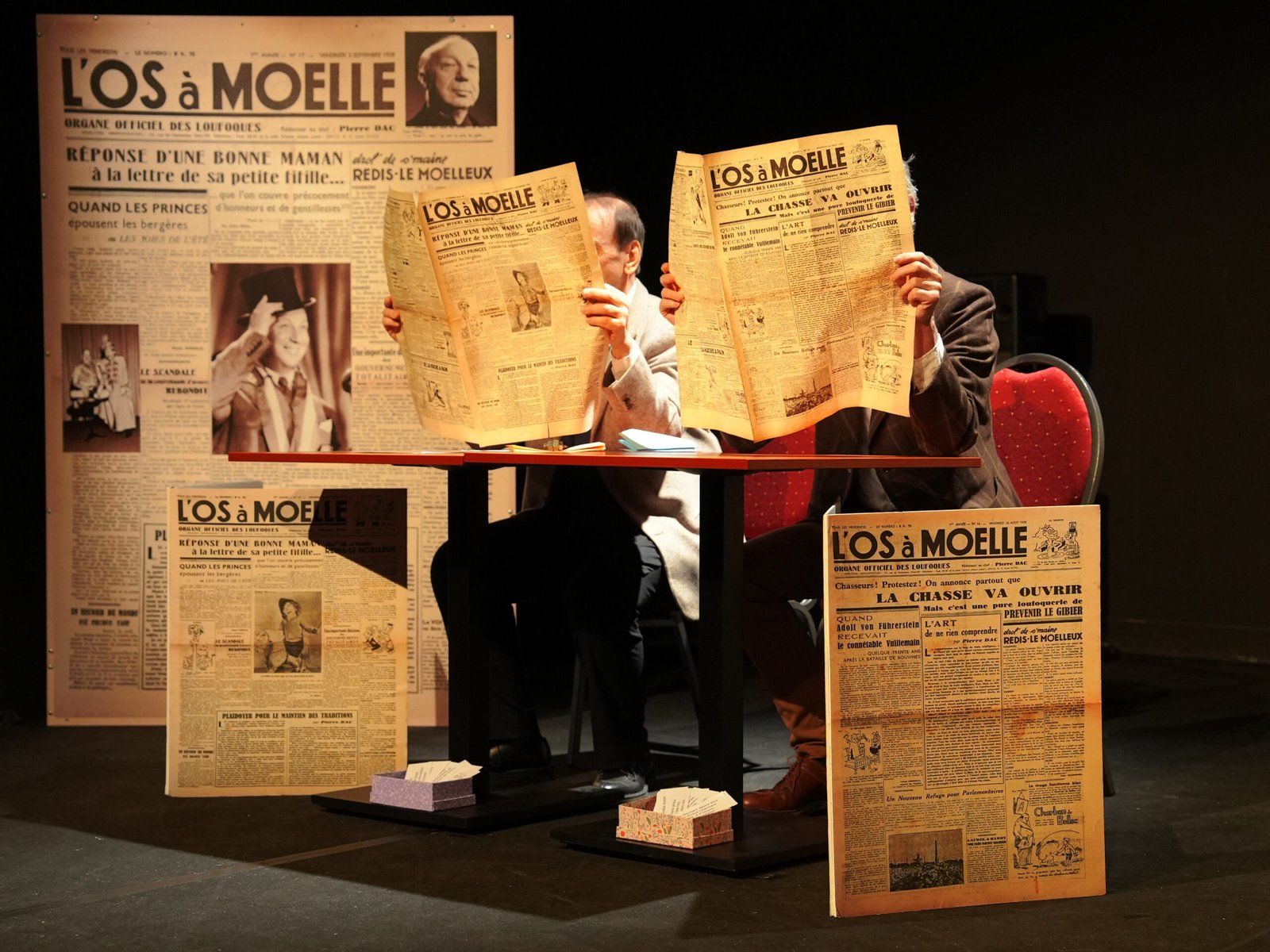 Le 13 mai 1938, les Français découvrent dans leurs kiosques un singulier hebdomadaire : quatre pages, d’apparence sérieuse, entièrement dédiées au NON-SENS. Avec ses chroniques, annonces et entretiens complètement loufoques, L’Os à Moelle entre rapidement dans la légende et ses 100 000 premiers exemplaires s’arrachent dans la journée. Pourquoi ce titre ? « Pourquoi pas ? » répliquera Pierre Dac, son fondateur.